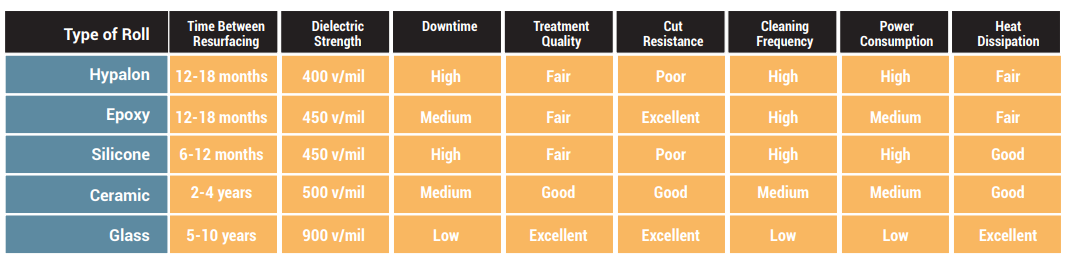 • Glassteel’s low watt density requirement achieves higher dyne levels with a more uniform, consistent and stronger corona or plasma discharge.
